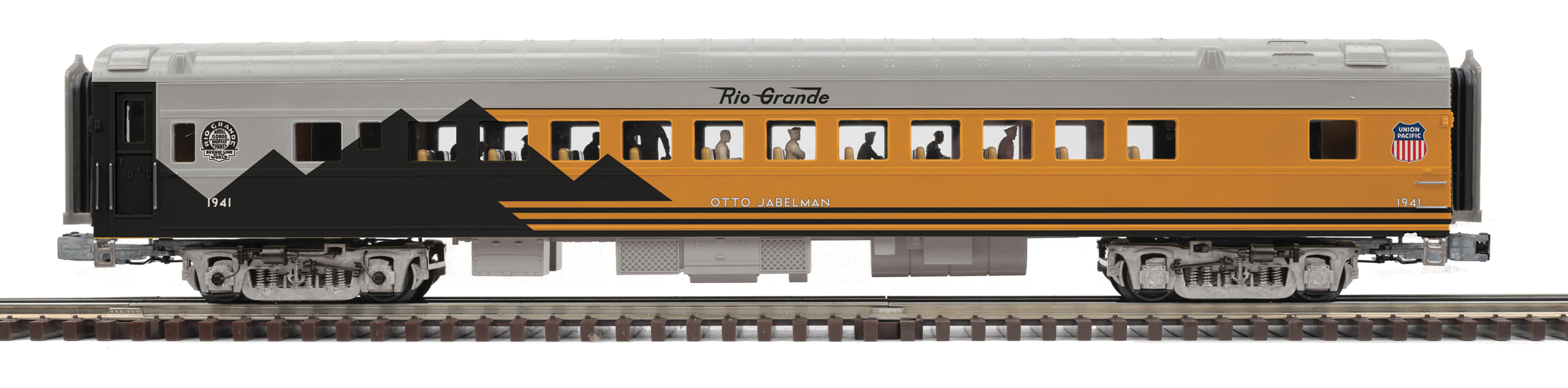 " I ordered the ski train cars, but I will park them and run your matching UP Heritage DRG 18" 4-Car Set. Your cars have the opening doors, people in the seats,
